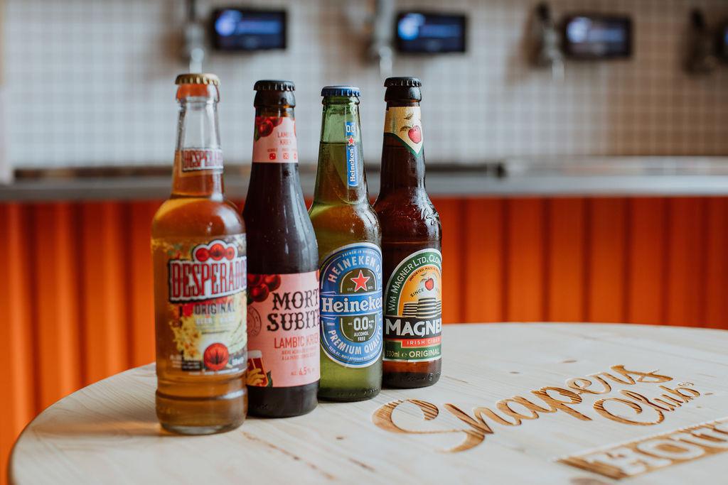 Bières en bouteille et cidre, pour varier les styles : fruité, sans alcool ou plus corsé.